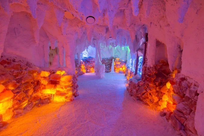 Sie sitzen bekleidet in einem sechs Quadratmeter großen Raum, in dem durch die Vernebelung von Sole ein trockener Nebel entsteht, der durch die Atemwege und über unser größtes Organ, die Haut, ins Blut gelangt und den Körper mit Mineralien und Spurenelementen versorgt.