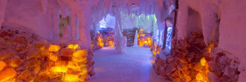 Unsere Salzgrotte bietet Ihnen ein Mikroklima wie am Meer – ideal zur Unterstützung der Atemwege, zur Stärkung des Immunsystems und für eine intensive Tiefenentspannung. Ergänzend dazu verwöhnen wir Sie mit beruhigenden Massagen, vitalisierenden Wellnessanwendungen und einem modernen Infrarot-Spa, das wohltuende Wärme bis in die Tiefe schenkt.